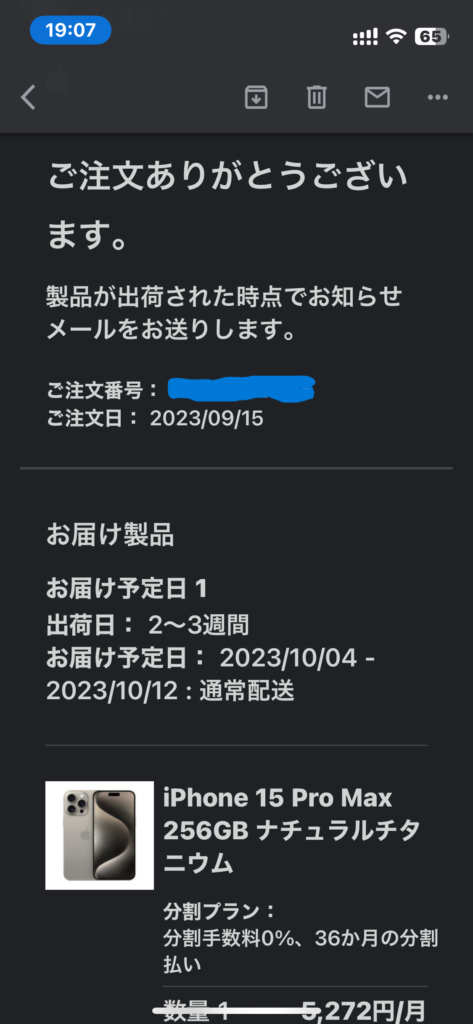 iPhone 15 Pro Max注文したよ!